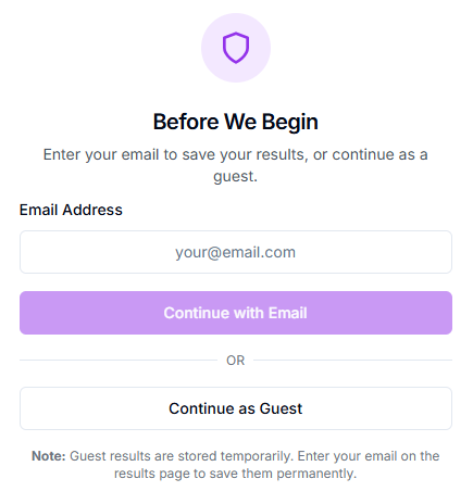 After completing the quiz, you will be prompted to create an account.